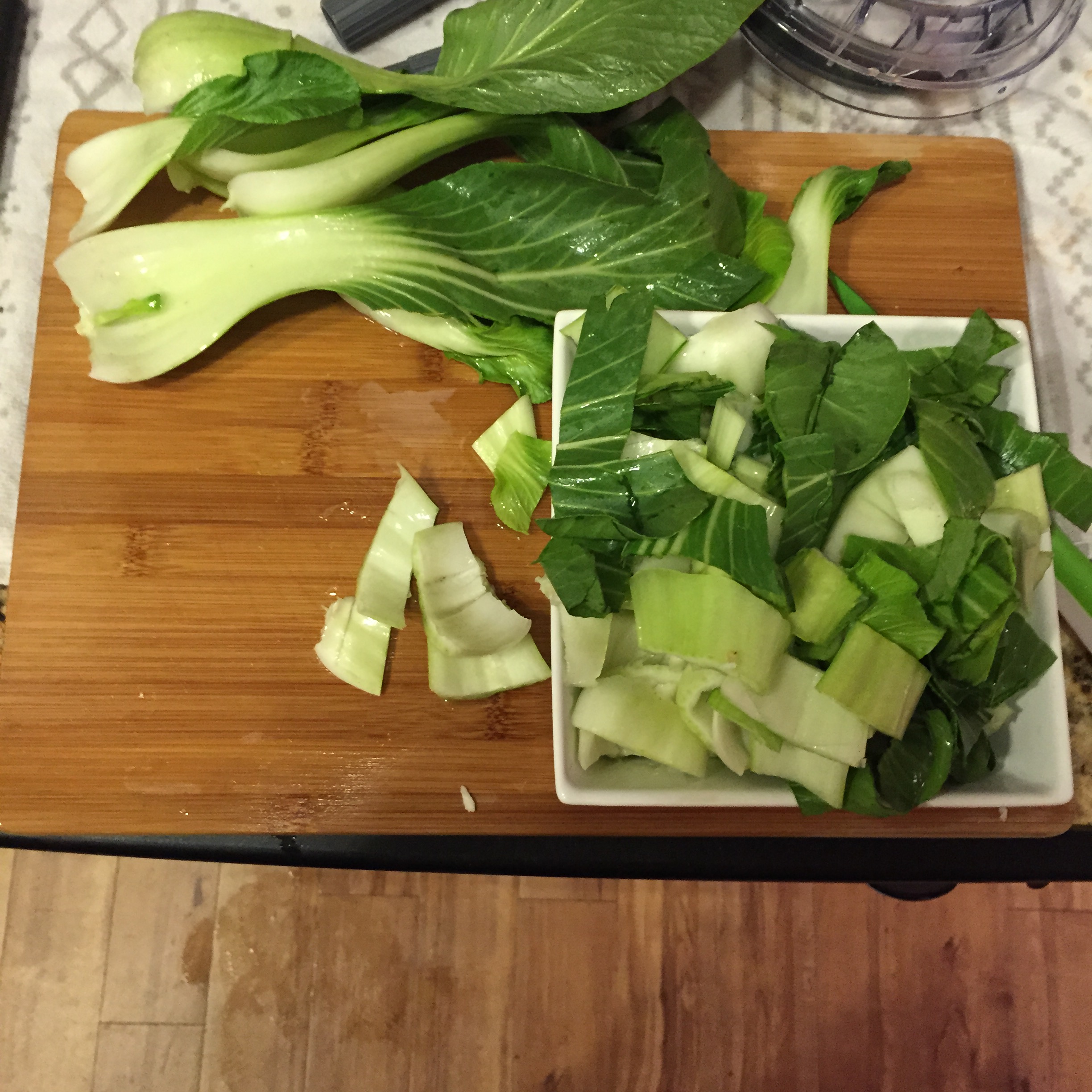 1. Wash and chop (as pictured below) BABY-Bok Choy (try to buy organic and fresh-looking!) (regular Bok Choy tends to be more bitter)
