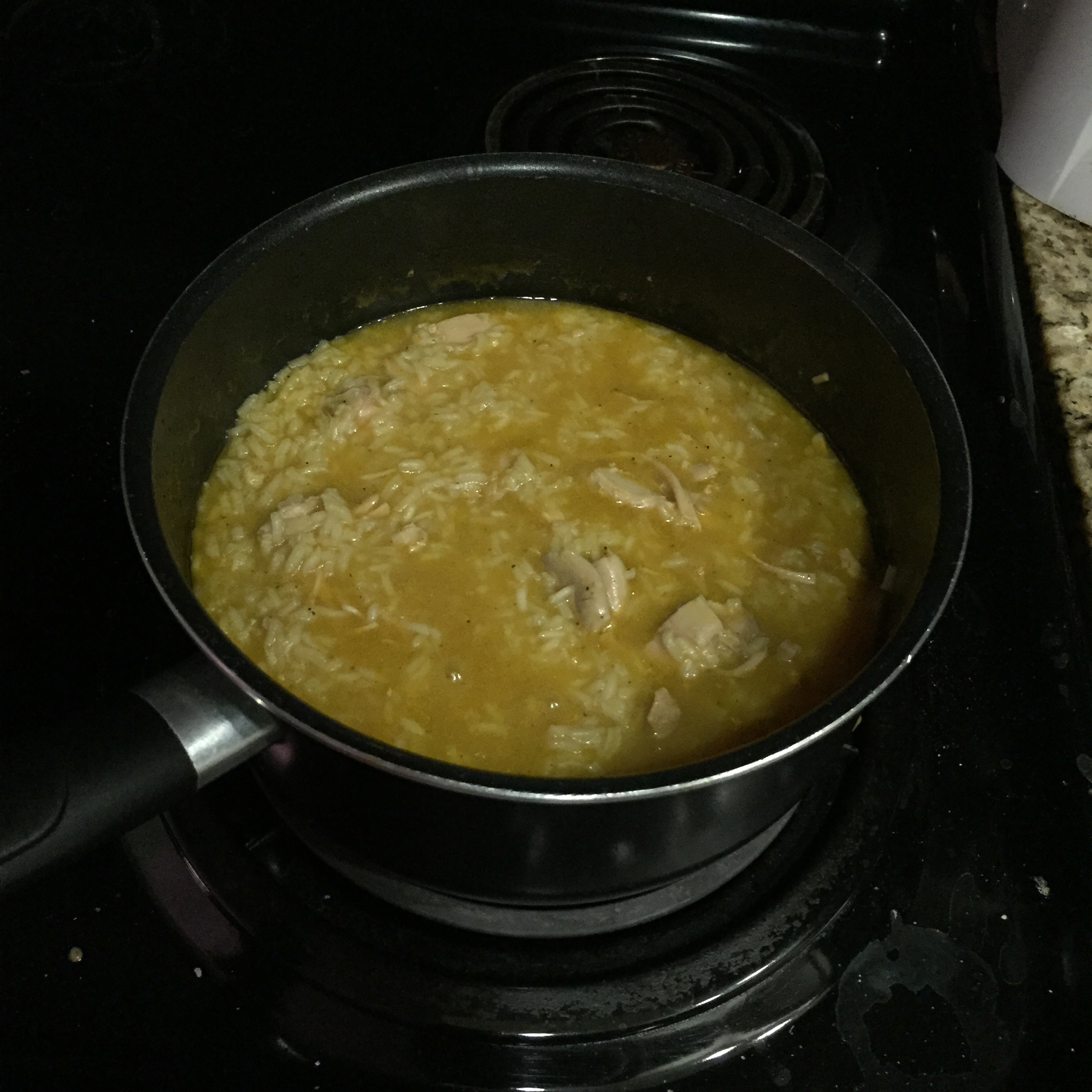 5. Cook starch in the chicken broth according to package instructions; my white rice took about 20 minutes.