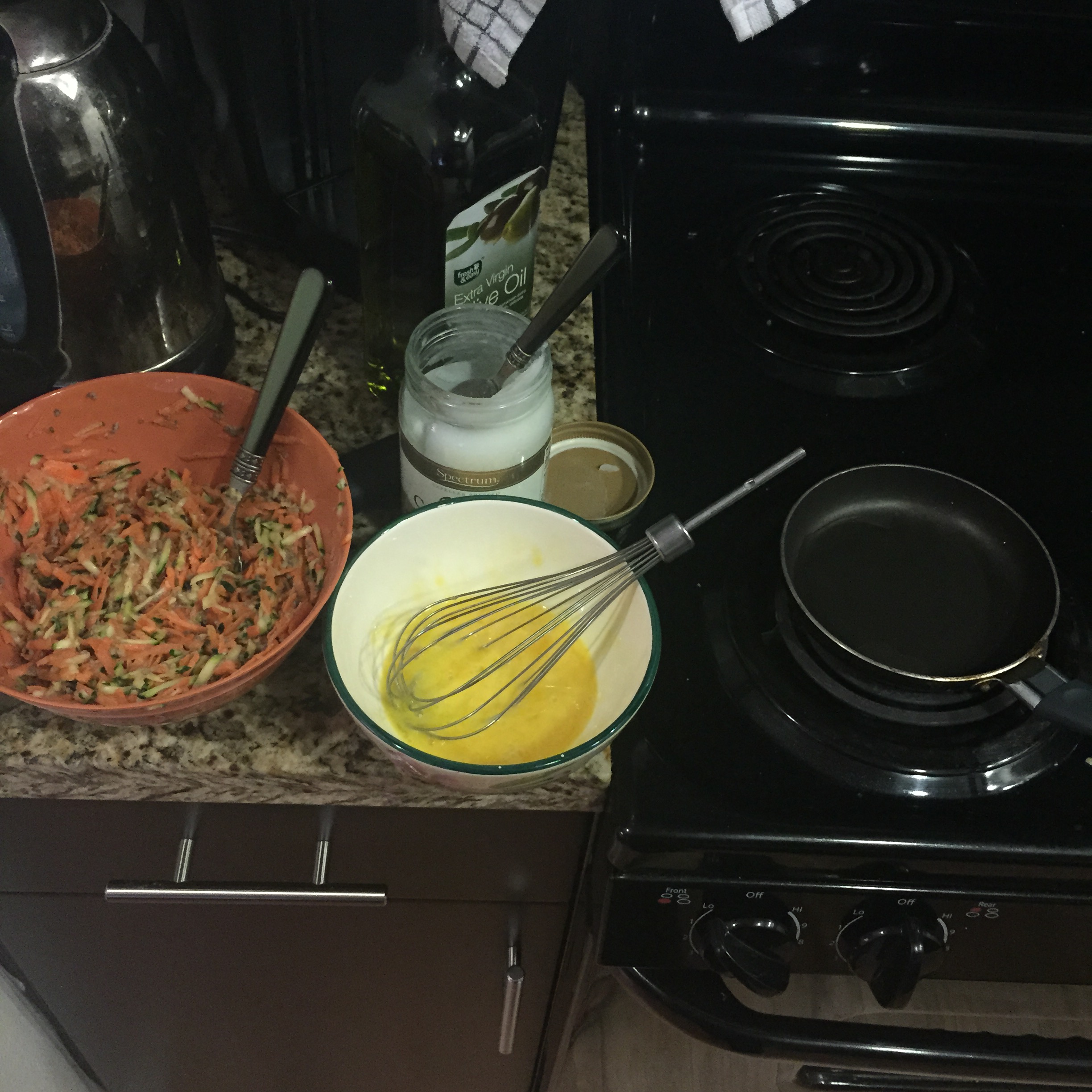 - Wash and skin the yam; grate yam and zucchini as pictured