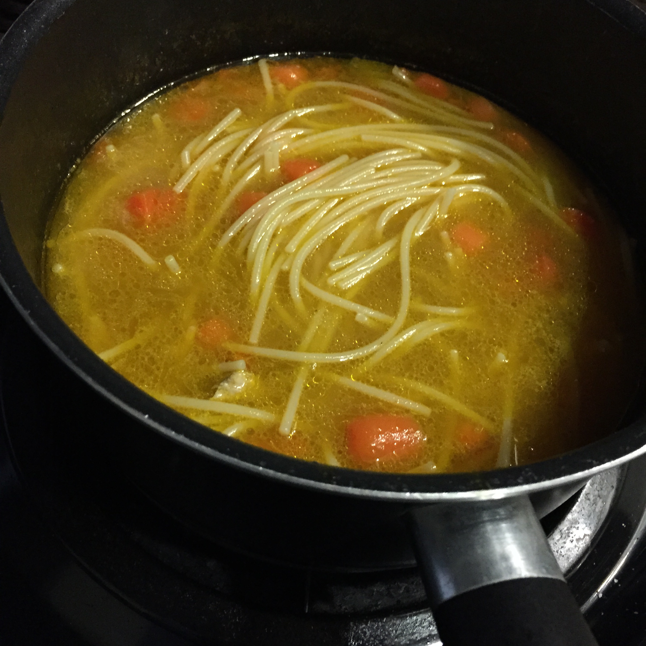 2. Allow to simmer then add chicken broth. Bring to a boil