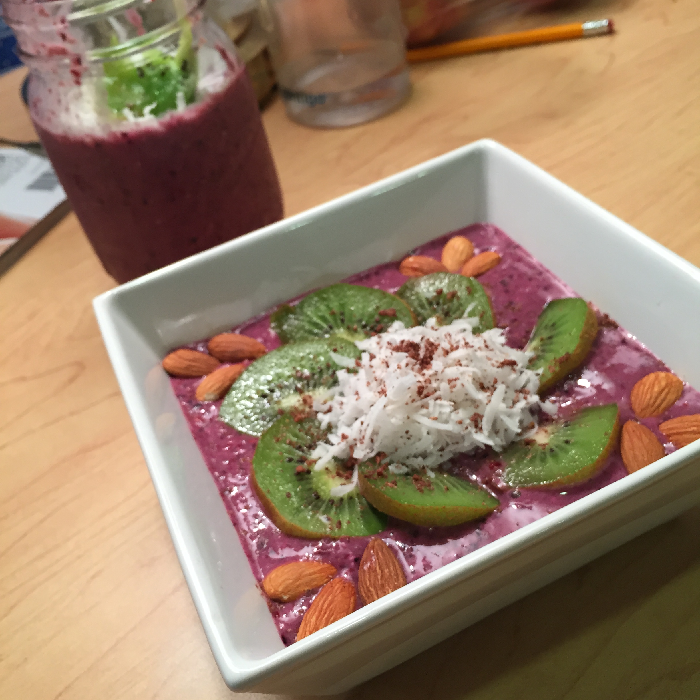 Top with: almonds, kiwi, coconut flakes, bananas, etc.