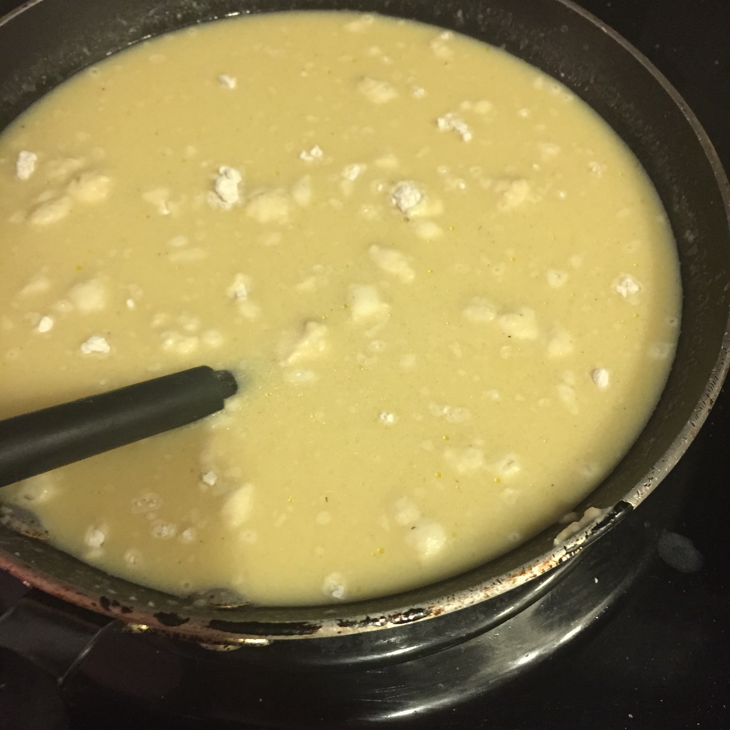 2. Add chicken broth and coconut milk, whisk/stir for 5 minutes, med heat.