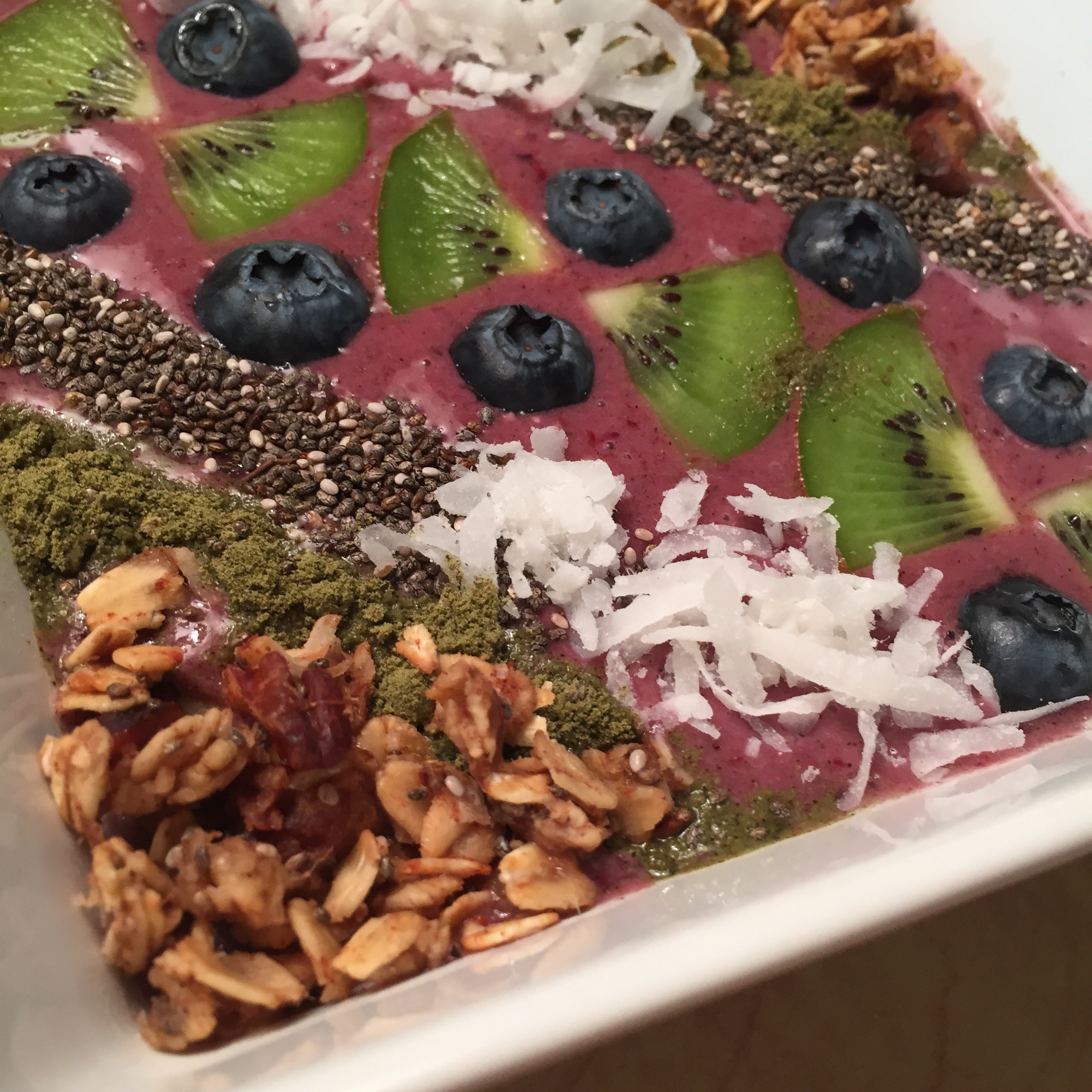 Blend 2 cups frozen berry mix and 1 banana with 1 cup of water or coconut milk. Add 2 tbsp of Hemp protein powder and 2 tsp of vanilla. Top with your favorite fresh fruits, granola, coconut flakes, chia seeds, and hemp powder. YUM!