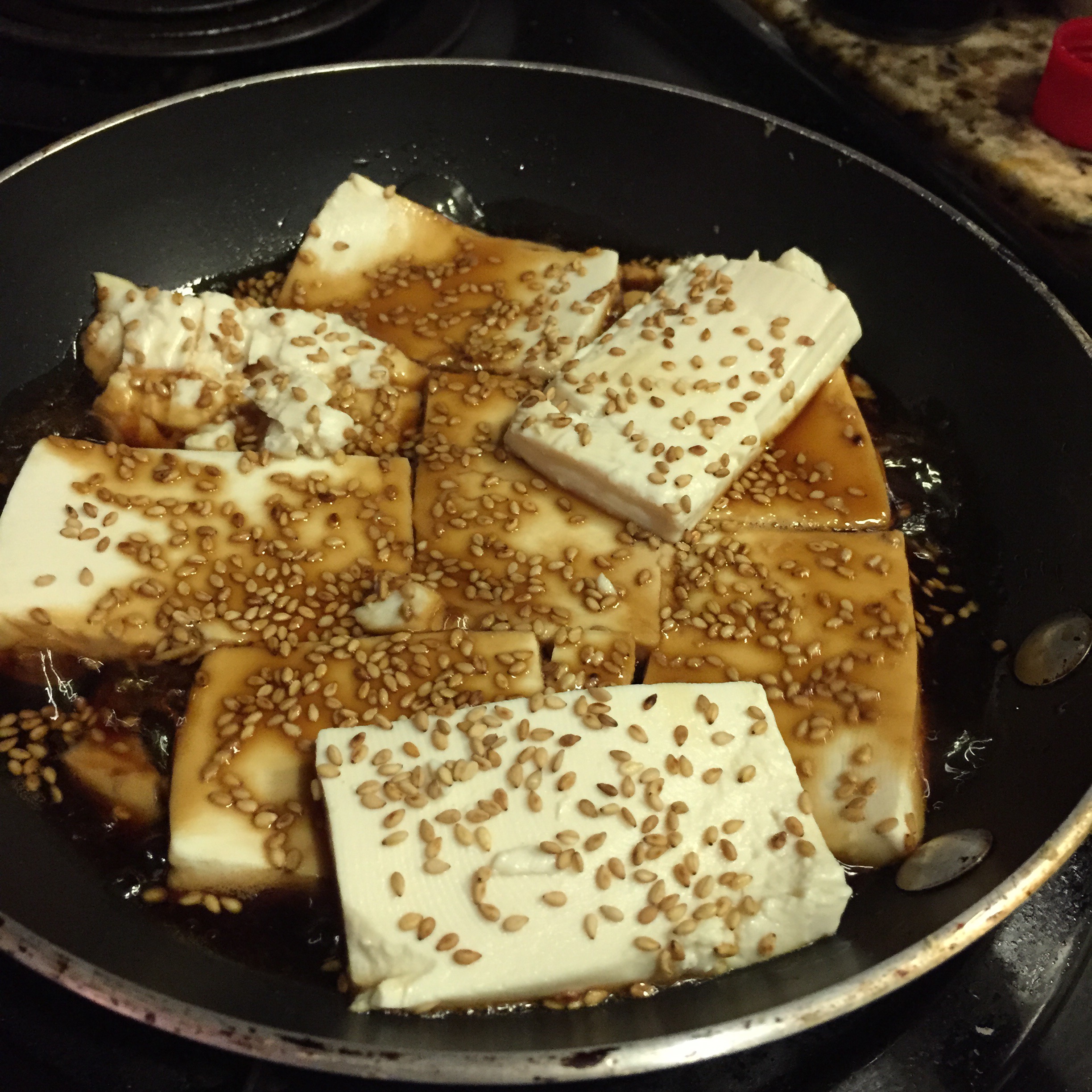 - Add ¼ c Teriyaki sauce and sprinkle on sesame seeds.