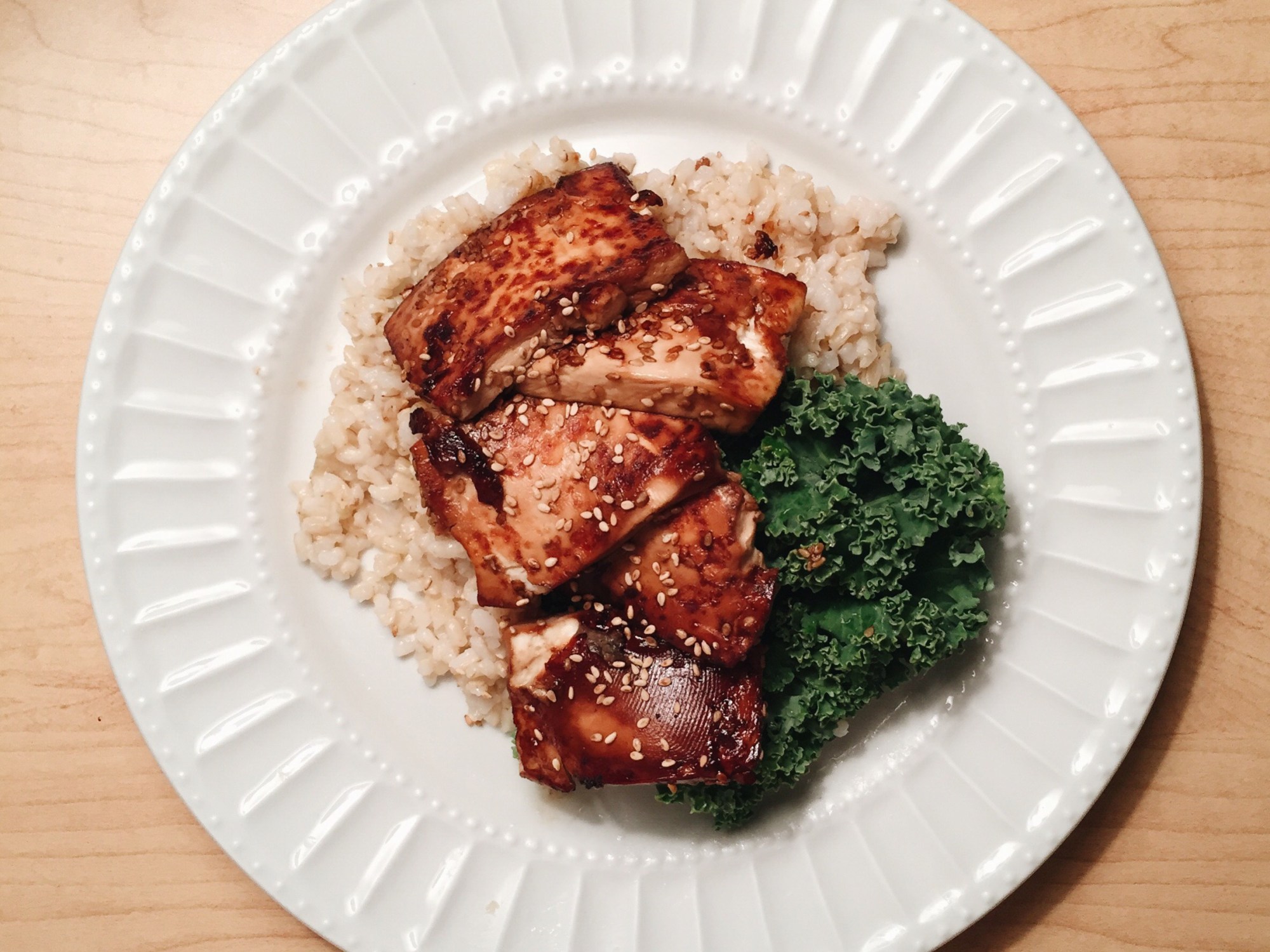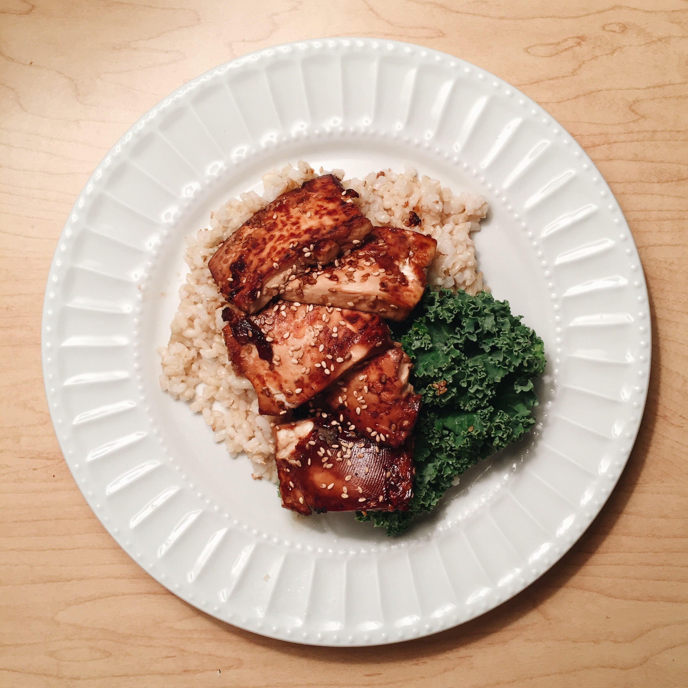 And a little kale, tofu, teriyaki sauce, sesame seeds, and brown rice 🙂