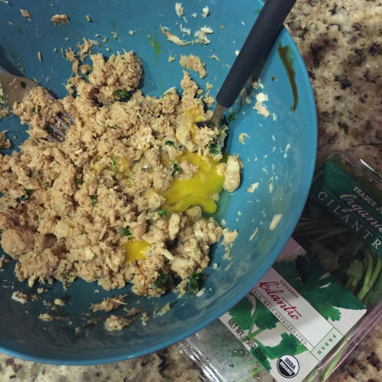 2. Divide mixture into 4 patties and chill for 1 hour (chilling optional, helps them keep shape while cooking)