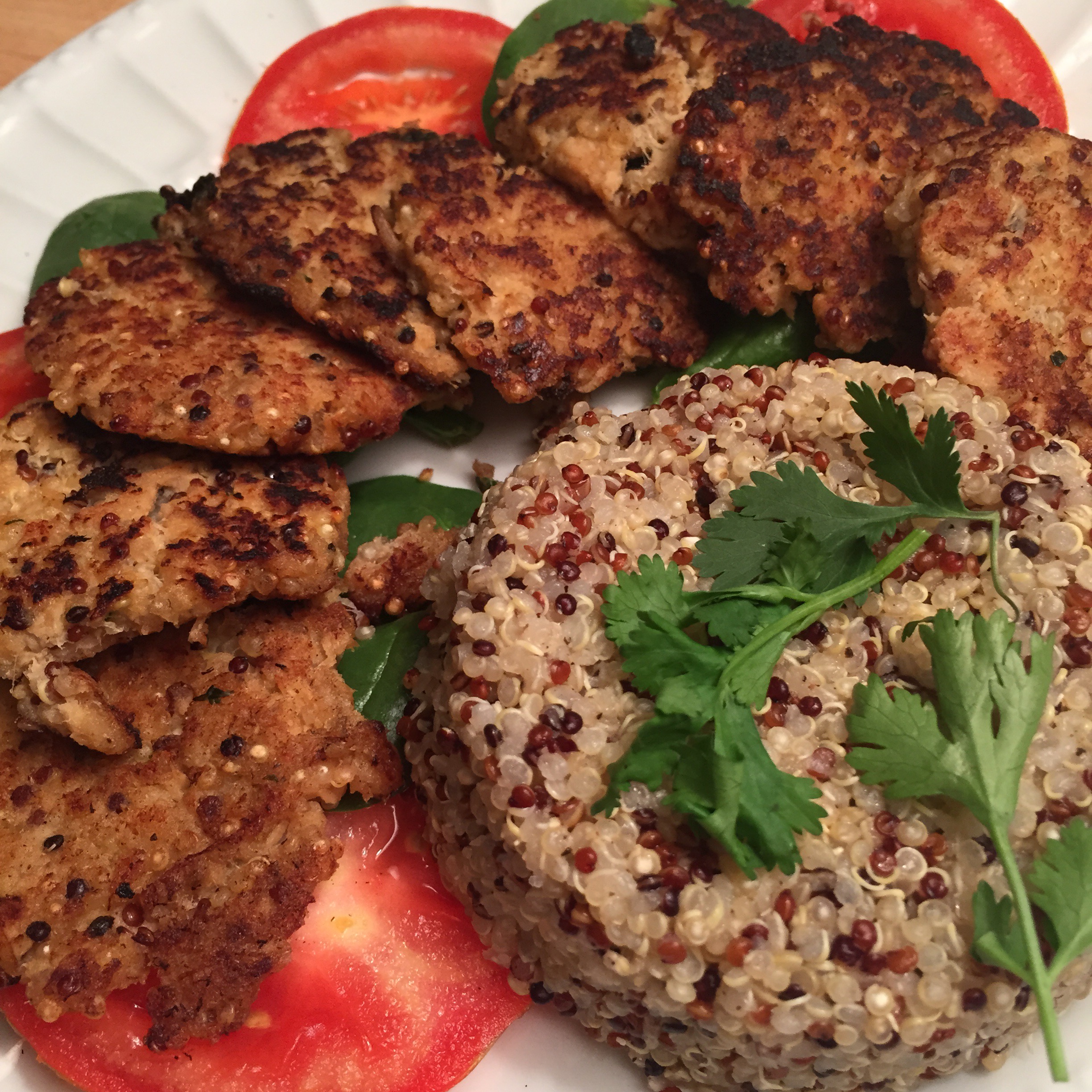 4. Serve with lemon, mixed greens, and quinoa. Make a tuna burger, too!