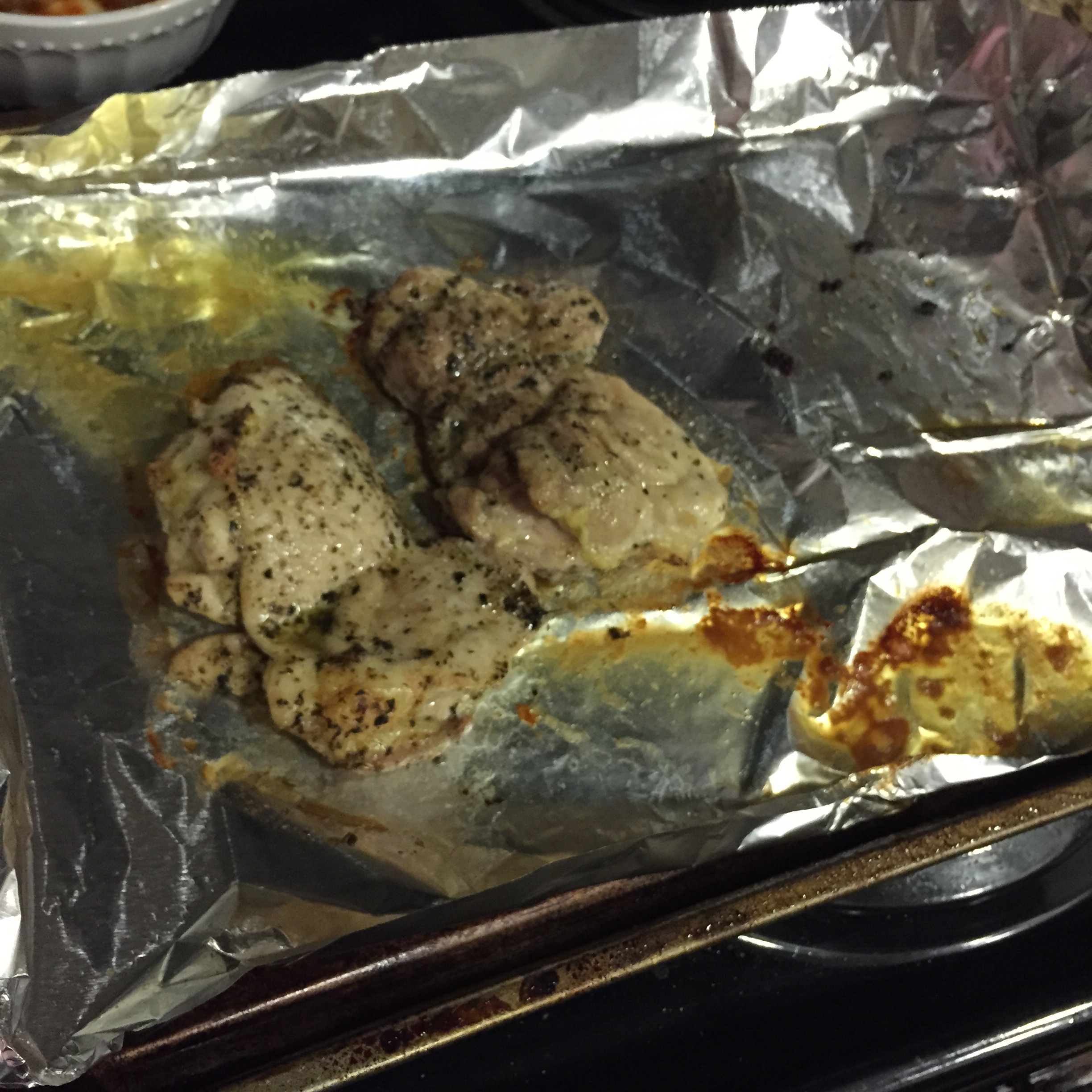 Serve with baked chicken (Shake in a plastic bag: chicken coated with olive oil, salt, pepper, Italian seasoning, oregano, and basil. Bake in oven at 400 degrees F for 25-30 minutes)