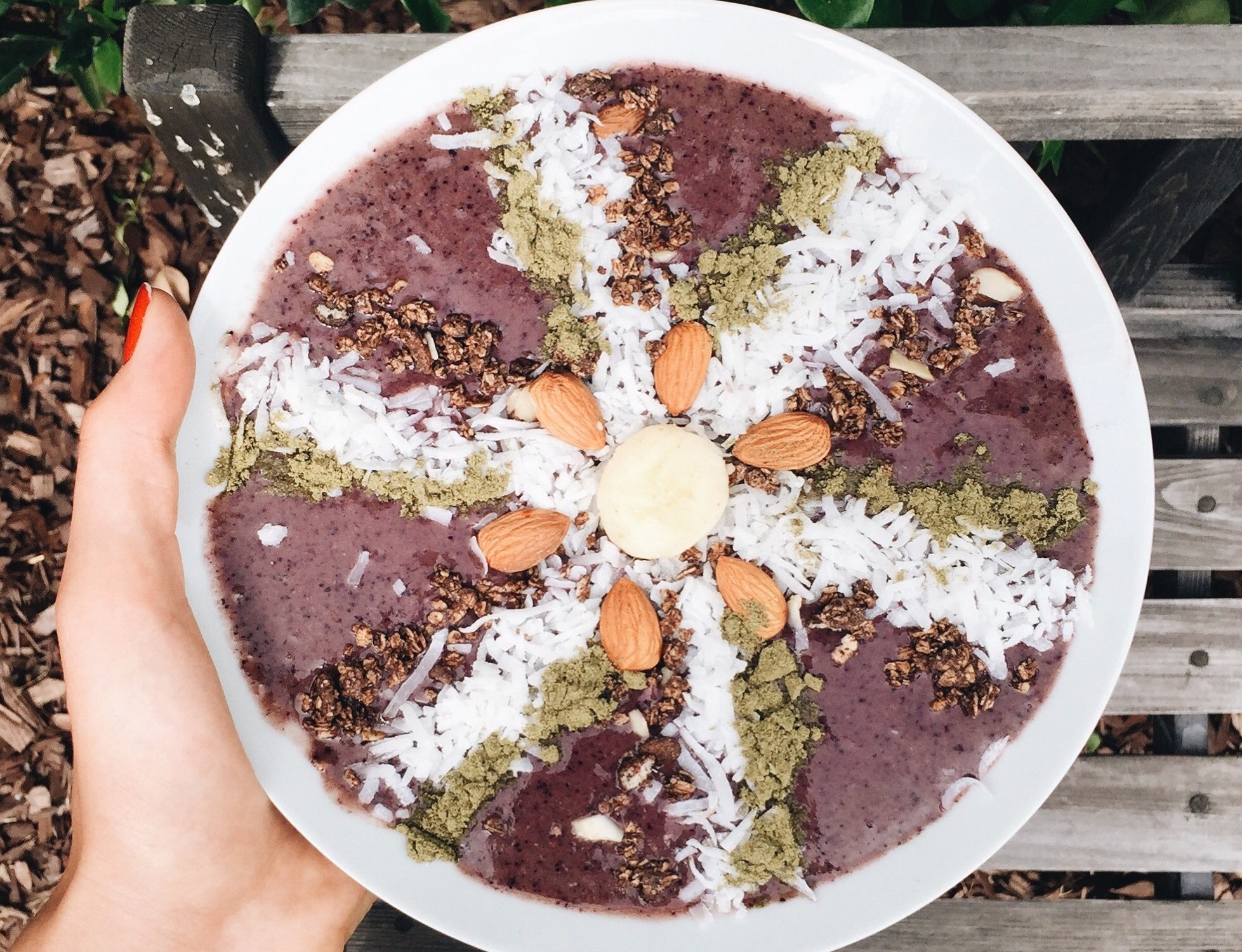 Blend: frozen berries, water, and bananas. Lots of bananas. Add hemp protein powder for a great boost!