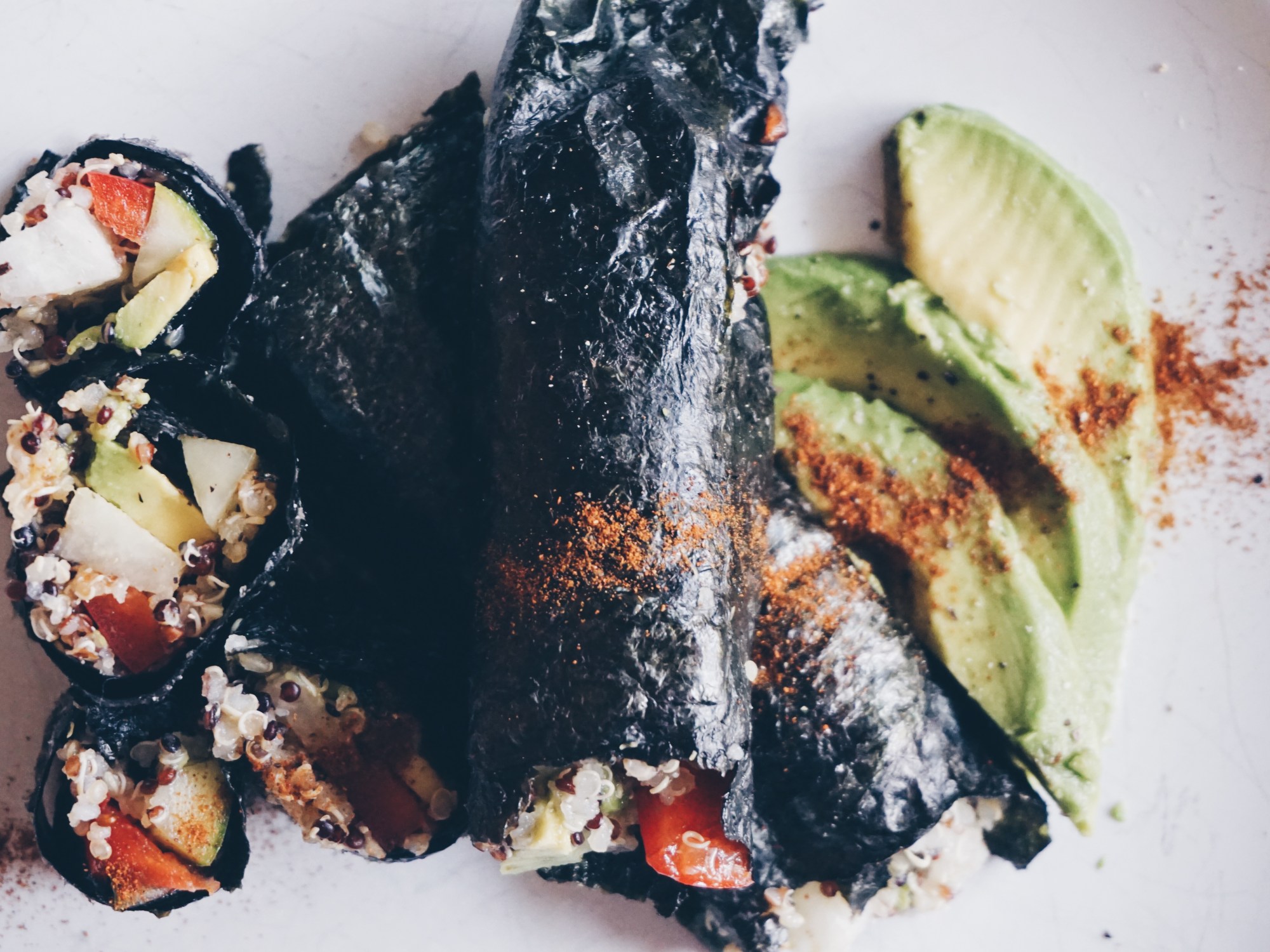 I was inspired by Deliciously Ella for this one. When I went to London this summer, I stopped by her adorable deli, The MaE Deli, and picked up a copy of her signed cookbook. I am such a nerd, I will admit it, but I cannot help but love her vegan recipes and commitment to a healthy lifestyle. As I was flipping through the weeknight meals selection of her book, I came across her vegan sushi recipe! I decided to do a little FODMAP twist on this one; I hope you enjoy it!