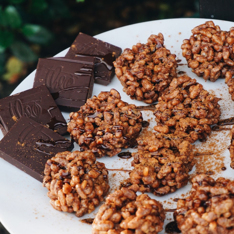 Puffed-Brown Rice Dark Chocolate PB Crispies